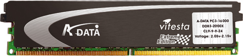 Az A-Data DDR3-2000X jelű memória, mint neve is mutatja, a tuningos Vitesta X családba tartozik, és két darab 1 GB kapacitású modult tartalmazó szettben kerül piacra. CL 9-9-9-24 késleltetési értékeit és magas órajelét 2,05–2,15 volt üzemfeszültségen éri el.