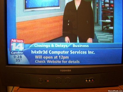 A News 14 Carolina televíziós hírcsatorna kénytelen volt beszüntetni azt a szolgáltatását, amelyen keresztül a helyi iskolák és üzletek közleményeket tehettek közzé akkor, amikor a heves hóviharok miatt több üzlet és iskola is bezárt. A csatorna lehetőséget biztosított számukra, hogy egy webes felületen keresztül üzeneteket jelenítsenek meg a tv-adás közben.