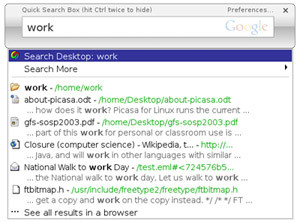 Lassan készülget a Google Desktop linuxos kiadása. Miközben a windowsos változat már az 5.5-ös verziószámnál tart, a nyílt forráskódú operációs rendszerre hároméves késéssel idén júniusban megjelent verzió most jutott el az 1.1-ig, és még mindig béta-állapotú. A program elsősorban a számítógépen tárolt állományok indexelésére és gyors keresésére használható.