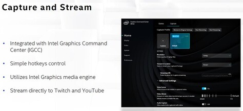 A vállalat a múlt évben már hozott egy friss vezérlőközpontot, amely IGCC, azaz Intel Graphics Control Center névre hallgat. Mindez jó alapnak tekinthető, hiszen így könnyen hozzá lehet adni az új funkciókat a rendszerhez. Többek között érkezik az idén bejelentett, videókat rögzítő és streamelő modul végleges változata, amely az adott grafikus vezérlő multimédiás hardverére támaszkodik. Ezzel az Intel ténylegesen felteszi magát a térképre az AMD és az NVIDIA hasonló szolgáltatásai mellé, ami egyrészt örömteli, másrészt ezek a funkciók ma már kötelezőek.