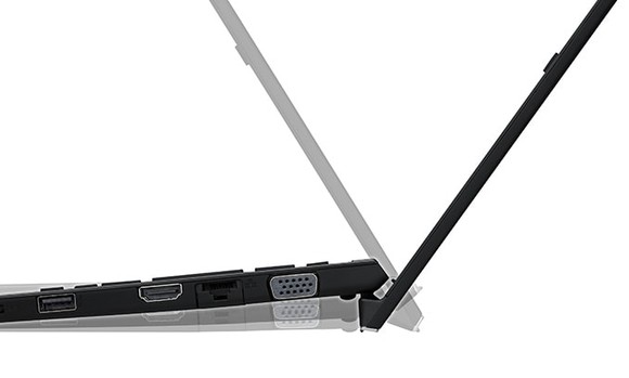 A gyártó nem volt szűkmarkú a csatlakozók terén még a 13 mm vékony kialakítása ellenére sem. Az Ethernet interfész biztosítja a hálózati hozzáférést, a D-Sub és a HDMI aljzatok a megjelenítőket várják, emellett még három USB 3.0 áll rendelkezésre, de egy SD-kártyaolvasó, és egy 3,5 mm-es jack csatlakozó is az összeállítás részét képezi.