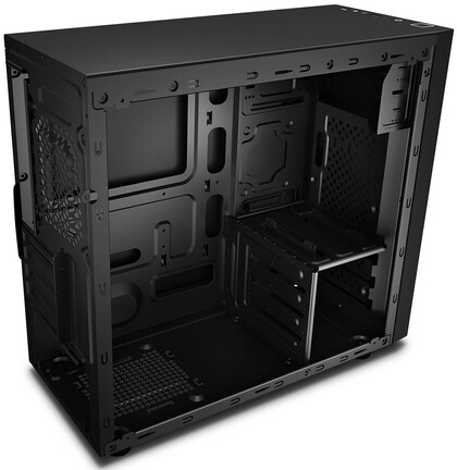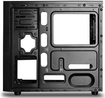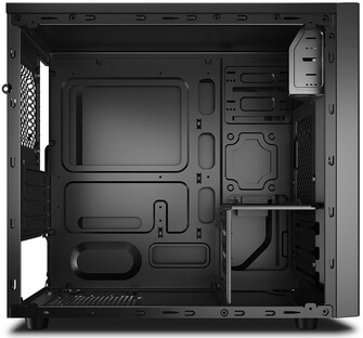 A belsőbe legfeljebb 151 mm magas processzorhűtőt, illetve 170 és 250 mm hosszú tápegységet, valamint videokártyát pakolhatunk, miközben a kábelmenedzsment számára 15 mm-es hely áll rendelkezésünkre. Két darab 2,5 hüvelykes, továbbá három darab 3,5 hüvelykes háttértárolót tudunk beépíteni, és hátulra alapból kapunk egy 120 mm-es légkavarót – ám elölre már külön kell megvásárolnunk a (szintén 120 mm-es) ventilátort.