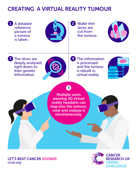 A megszerzett adatok segítségével elkészítik a rákos daganat 3D modelljét, amit a VR headsetek segítségével tudnak majd tovább vizsgálni. Ettől a megoldástól azt várják, hogy a korábbi 2D és 3D vizualizációs eljárásoknál alaposabb tudásra tehetnek szert a betegségről, a világ különböző pontjain dolgozó orvosok hatékonyabb együttműködését is segítheti. Úgy tervezik, hogy a rákos daganatok elemzése csak az első lépés lesz a virtuális valóságban, ami új fejezetet nyithat az orvostudományban. A hat évre tervezett projekt elnyerte az angol rákkutatással foglalkozó szervezet húszmillió fontos (kb. 7 milliárd forint) támogatását.