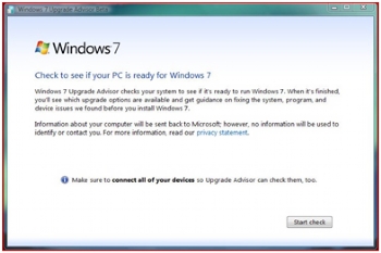 A Microsoft kiadta a Windows 7 Upgrade Advisor névre keresztelt rendszerdiagnosztikai szoftverének béta-változatát, mely arra hivatott, hogy megállapítsa, a felhasználó számítógépe az adott konfigurációban képes-e problémamentesen futtatni a Windows 7-et. Az alkalmazás átfésüli a PC hardver- és szoftverkomponenseit egyaránt, és értesít bennünket arról, ha az új operációs rendszerrel inkompatibilis összetevőre bukkanna; természetesen a program javaslatot is ad az esetleges fejlesztésekkel, frissítésekkel kapcsolatban, például amennyiben egy elavult eszközmeghajtót talál, felhívja figyelmünket annak cseréjére.