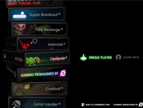 Az Atari működésének negyvenedik évfordulója, valamint az Internet Explorer 10 egyre közeledő megérkezése tökéletes alkalom arra, hogy olyan méltán híres játékokat lehessen feleleveníteni, mint az Asteroids, Pong, Lunar Lander, Missile Command, Centipede. Néhány játék új felületet és frissített játékmenetet kapott: a felhasználók mostmár egymás ellen is tudnak játszani, valós időben, magas pontszámokért, például olyan kedvelt játékokat, mint a Breakout vagy a Combat.