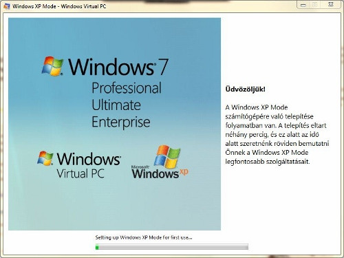 Az XP mód használatba vételéhez a Microsoft oldalán található Windows XP Mode és Windows Virtual PC alkalmazás telepítőjének letöltése és ezek installálása szükséges. Előbbire úgy készüljünk, egy 445 megabájtos, MSI kiterjesztésű alkalmazást kapunk, ami nem meglepő, mivel egy teljes, x86-os Windows XP (Service Pack 3-as kiadás) állományairól beszélünk. A telepítés és konfigurálás mindössze néhány kattintás, az erőforrások kiosztási szabályaival sem kell bajlódnunk.