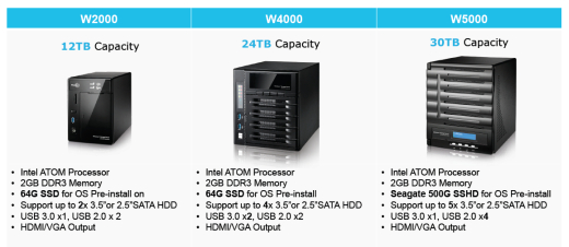 Az azóta eltelt időben a mobil eszközök és a közösségi tartalommegosztás terjedésével, népszerűsödésével párhuzamosan robbanásszerűen megnövekedett az emberek és cégek által létrehozott adatmennyiség, amit valahol biztonságosan tárolni is kell. Ezért most, két évvel később a Thecus gondolta, otthoni és kisvállalati környezetben is igény lenne könnyen kezelhető, megfizethető, de mégis profi tudású tárolószerverekre, ezért piacra dobták a Windows Storage Server 2012 R2 Essentials-ra építő új sorozatot, amely a W2000, W4000 és W5000 modelleket foglalja magában.