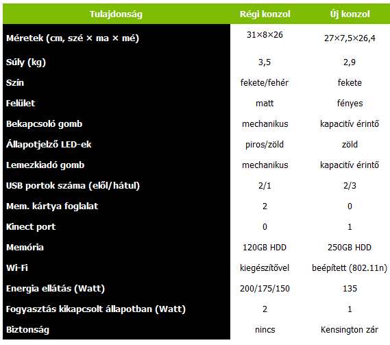 A Pletyka ezúttal is valósággá vált, és az E3 alatt leleplezték az Xbox360 új változatát, ami meglehetősen pofás külsőt és új szolgáltatásokat kapott. Az alább látható táblázat (köszönet partneroldalunknak a 360fanatix-nak) azt hivatott szemléltetni, hogy milyen különbségek fedezhetőek fel a két gép között. A galériában pedig találtok néhány képet is az új szerkezetről.