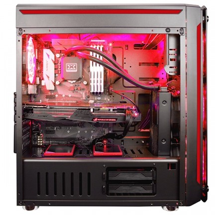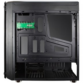 Gyárilag négy darab 120 milliméter átmérőjű, vörös LED-es ventilátor jár a házhoz, három az előlapon, egy pedig a megszokott módon a hátlapon foglal helyet, és további három 120 vagy kettő 140 milliméteres szélgép kaphat helyet a fedélre rögzítve. Természetesen a felsorolt helyekre vízhűtő ventilátor is felfogatható. Összeszerelve a belső teret kívülről is láthatóvá tették, ugyanis a házhoz akril ablakos oldallap jár. Az elmaradhatatlan I/O részleg is helyet kapott, méghozzá a ház tetején (két USB 3.0 és két USB 2.0, két 3,5 milliméteres jack formájában a szokásos gombok mellett).