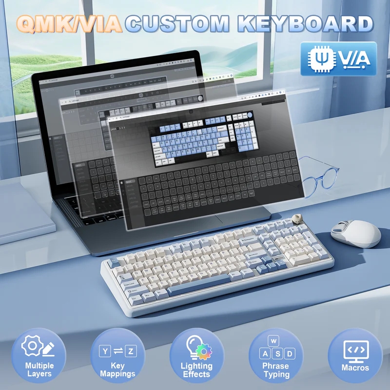 A célgépre 2,4 GHz-es rádióval, háromeszközös Bluetooth 5.0-val vagy USB Type-C kábellel köthető, (nettó) 92 dollárra árazott újdonság hátulján egy kapcsolódási módok között léptető, illetve egy Win/Mac üzemmódok közt váltó retesz nyert elhelyezést, noha az utóbbi tulajdonképp csupán egy fizikai rétegváltó. Ha már itt tartunk, a kihajtható, dongletartó rekeszt rejtő lábpárjainak hála kétszintű döntést kínáló típus nyílt forráskódú QMK firmware-rel dolgozik, emellett támogatja annak VIA GUI-ját, szóval a konfigurálhatóság mértékének legfeljebb csak álmaink szabhatnak határt.
