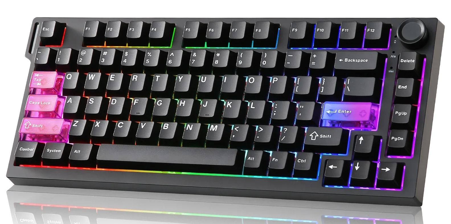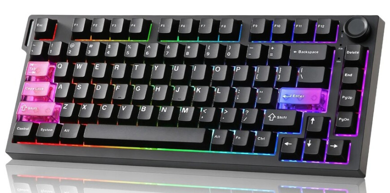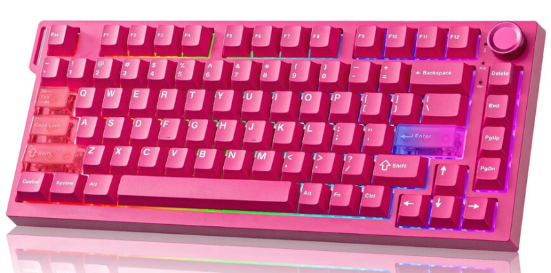 A 75 százalékos kivitelű, feketében vagy rózsaszínben választható megoldás a jobb felső sarkában egy multifunkciós tárcsát visel, miközben gyorscserés foglalataiban 3,5 mm-es úton járó Outemu Magnetic Red kapcsolók tanyáznak, amelyek 30 gf-os kezdeti erőkifejtést igényelnek, a bottom outjukhoz pedig 55 gf nyomás szükséges. E gyárilag kent switch-ek aktuációs pontjait a 0,1-től 3 mm-ig terjedő tartományban konfigurálhatjuk 0,1 mm-es érzékenységgel, és a Rapid Triggeren kívül az SOCD (Simultaneous Opposite Cardinal Direction), a DKS (Dynamic Key Stroke), a TGL (Toggle Key), illetve MT (Mod Tap) funkciók is a rendelkezésünkre állnak.