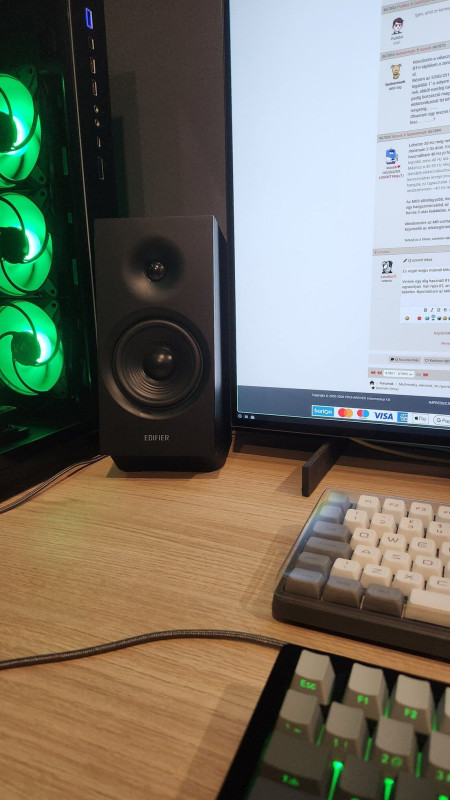 Na megnéztem végül jó sok alternatívát, miután némi rendezkedéssel sikerült kb 140-140mm helyet csinálni az asztalon. Már majdnem az 1280dbs-nél kötöttem ki, de végül túl retronak ítéltem meg a kinézetét. Egyszerűen nem passzol ide, meg a mérete is határeset. Ezenkívül azt hiszem kicsit laposabb hangszínhez szoktam a mackiek miatt. Szóval egy pár Edifier MR3-at rendeltem be kipróbálásra. Kisebb is, jobban el tudom helyezni, nem lesz annyira beszorítva. Meg 75 euróért nem rossz vétel. MR4 lett volna még 85 euróért, de az határeset méretben, nem lehetne már igazgatni rendesen. Illetve a Presonus Eris 3.5 gen2 volt még 83 euróért akcióban, de arról eléggé megoszlanak a vélemények, minőségileg, meg mély tartományban is, míg az MR3 hangzását kb mindenki referencia szinten értékeli. (Az M60 120 eurós árát meg jelenleg nem tudom hova tenni, szóval az is kiesett.)
