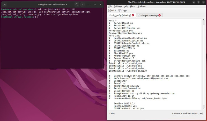 openssh cliens telepitetem bene volt az ssh_configjába nem én raktam bele PermitRootLogin yes be volt alapbol kapcsolva (nincs #)!