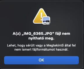 Airdropon küldöm át. Mikor jobb felül a minin megjelenik az értesítés, ott kicsiben látni a fotót. Finderből akarom megnyitni a megtekintővel és mindig ez a hibaüzenet fogad. MI lehet a gond? -