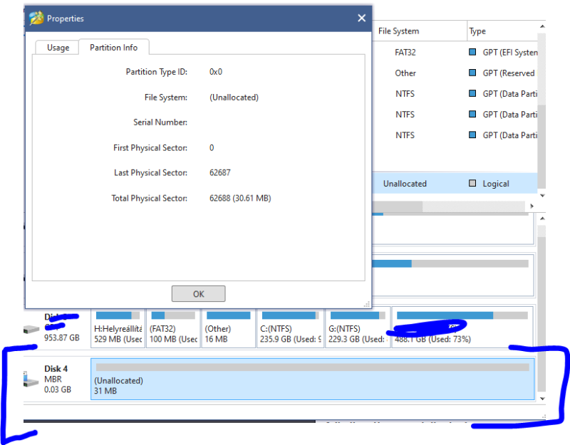 A következő a helyzet. Újra kellett installálni a laptopomat. Ezt csak úgy tudtam kivitelezni, hogy fogtam a külső hdd-met, csináltam belőle két partíciót, és az egyiket fat32-re formáztam, és rátettem a win10-et, majd erről bootoltam. A külső hdd-n volt egyéb adat is. Most a disk management-ben látom ennek a partíciónak a méretét, tudok is neki meghajtóneved adni, de a windows raw-ként kategorizálja, és formázni szeretné. Én meg ugye nem. A külső hdd egyébként teljesen ép.