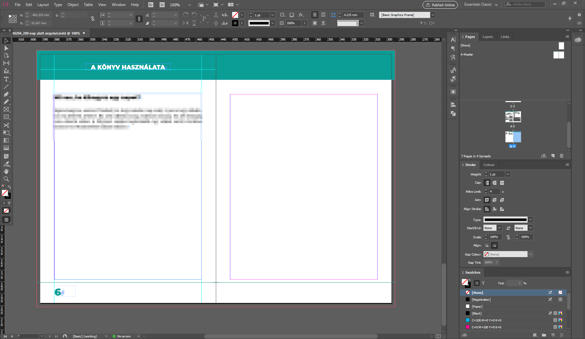 - Készítek egy cél-méretű új dokumentumot - méret, oldalszám, mesterre képkeret (az illesztést be kell rá állítani)