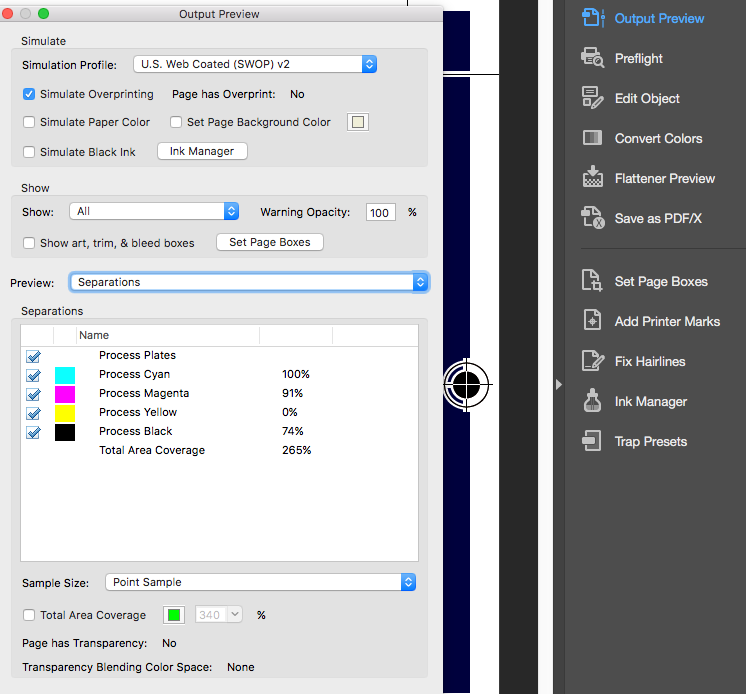 color settings - indesignígy ellenoriztem a pdf-et acrobat - print production - owerprint preview