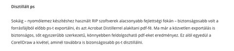 hát sajna nincs Adobe PDF a PPD listában .... este még kerestem volna nyomdák oldalain PPD, és volt ahol írták is, hogy disztillálni felesleges, mert az exportált PDF jobban feldolgozható PDF-et eredményet, kivéve a Coreldraw-t, abból még PS-t kell írni, és distillálni .... csak akkor nem értem az OSG mért küld ilyen leírást a nyomdai PDF-hez, hogy PS-t írni, distillálni ...... , vagy 2 órát elvettek az életemből ......persze sima export PDF-et kaptak ....