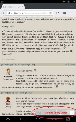 Eddig ami fent volt frissítés az alcor honlapján abba benne volt a fertőző fájl, de ettől függetlenül a régebbiekben is úgy tudom h benne volt. Kb. 1-2 hete frissítették a firmware-t ami igazándiból ugyan az mint eddig csak kitörölték belőle a kórokozó apk-t. Viszont az újabb tableteket még újabb firmware-rel árulják, de abban is benn van a bajság. Viszont valami miatt a magyar szervizhez még nem jutott el a 2015-ös update, szerintem ezért van még mindig fenn a honlapon a 2014. decemberi.