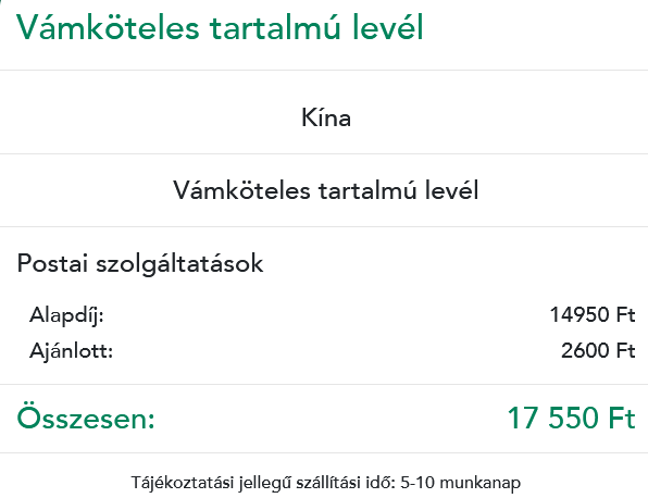 Azt magyarázatként írtam hogy mennyibe kerül Kínából ide.