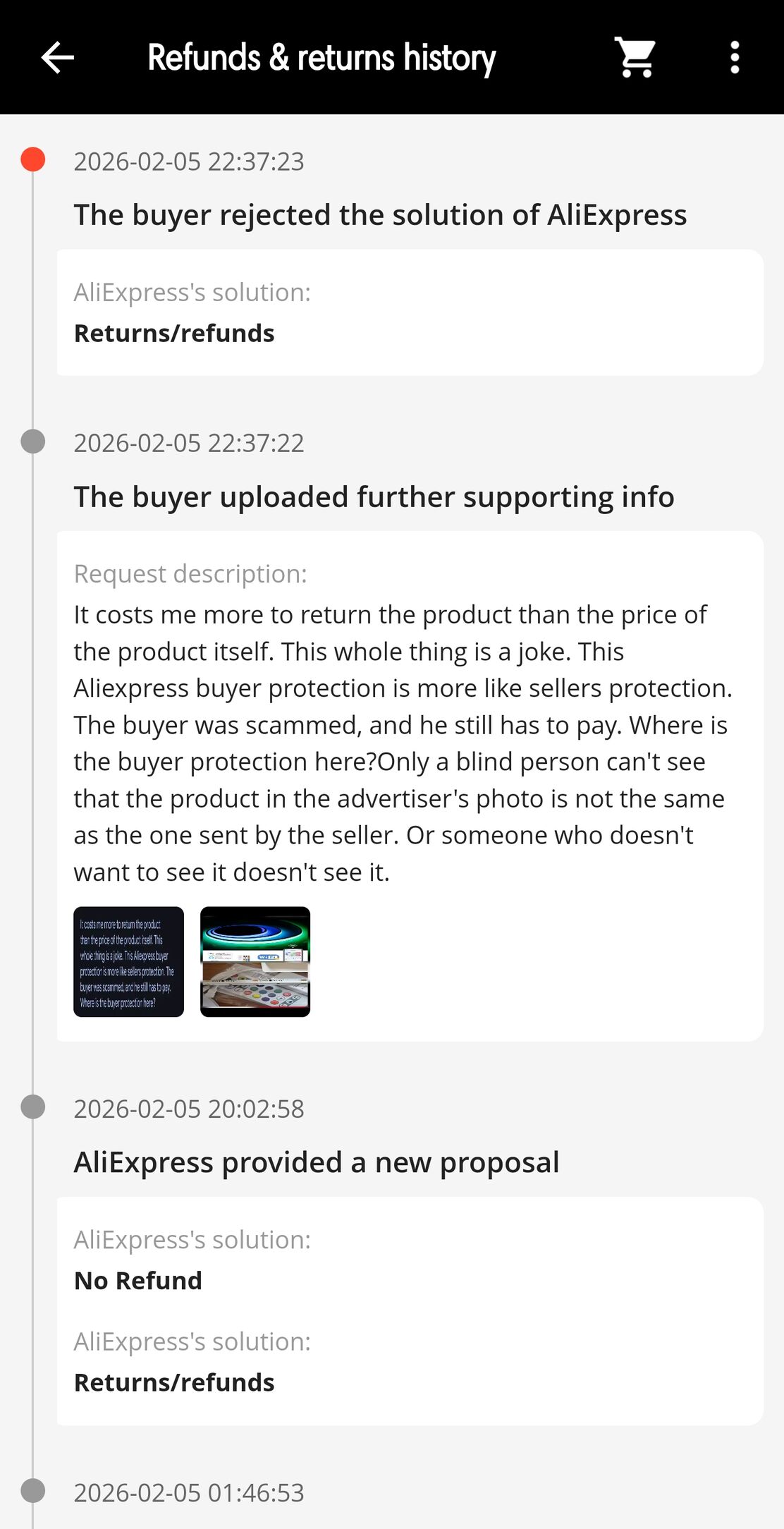 Talán pici fejlemény van. Nem fogadtam el egyik, az Aliexpres által felajanlott verziót sem, amit jeleztem is nekik [kép]