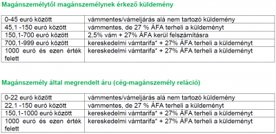 Ha mégis vámolják a csomagot, akkor igazolásokat kell benyújtani a postának, ez alapján fognak intézkedni. Először lássunk egy táblázatot: