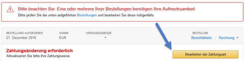 Ha nem tudják leemelni a pénzt, akkor emailt fogsz kapni róla. Utána rendeléseknél ezt fogod látni:Kattints a sárga gombra ha van már pénz a kártyán, majd erre: