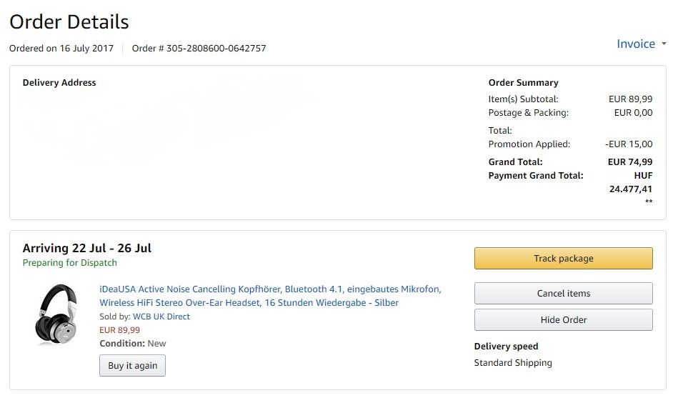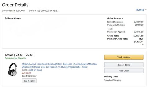 Üdv újra! Mivel első rendelésem német amazonon, sok kérdés kering a levegőben.