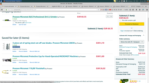 Sziasztok! Légyszi segítsetek. Sehogy se jön ki az ingyenes szállítás német amazonról több termék rendelése esetén 40 eur felett. Ha egy termék átlépi önmagában az összeget, akkor ok, a szállítás ingyenes.