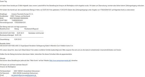A német Amazonról szeretnék rendelni pár dolgot. Mivel a Maestro kártyámat nem fogadja el, ezért beállítottam a bankszámlámat, hogy arról vonják le. Egy termék volt, amit külön szereznek be egy külsős cégtől, viszont ma hajnalban, kaptam egy emailt ettől a cégtől, hogy nem tudták levonni a számlámról a pénzt. Kaptam tőlük számlaszámot, hogy oda utalhatom. Viszont a többi cuccot az Amazonnak hogyan tudom kifizetni, ha ők sem tudják majd levonni a pénzt? Ők is küldenek szla számot?