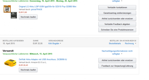 A német amazonról rendeltem szerdán egy terméket.Le is vonták a pénzt.