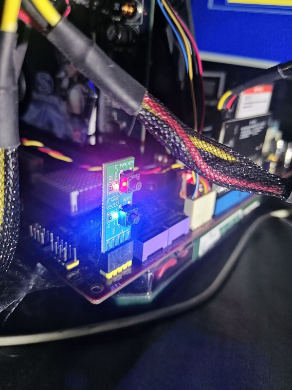 Van nekem is házból bontott nyomógomb, van olyan is, ami ledekkel együtt van. Hasznos, passzív megoldásnál is látszik, hogy valóban bekapcsolt-e, ha pl nem ad képet. Ezt a kis nyákost azért tartom jobbnak mert így is épp elég madzag kígyózik egy ilyen ház nelkül összerakott félgép körül az asztalon, így legalább ennek nincsenek vezetékei.