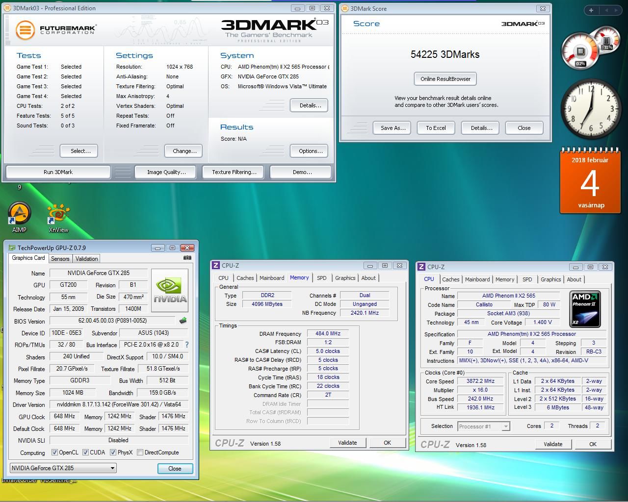 Meglett a stabil 4GHz- es beállítása a Phenom II X2 565 BE- nek. A szorzóval és az FSB- vel is kellett varálni. Ha nem tuningramok vannak mellette, akkor vissza kellett volna osztani jobban és lehet hogy nem is gyorsult volna...