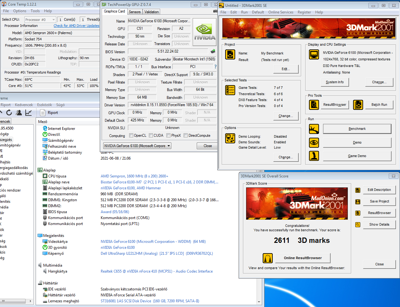 Az elsőt le is teszteltem, egy GeForce 6100-M7:Csúcs eredmény