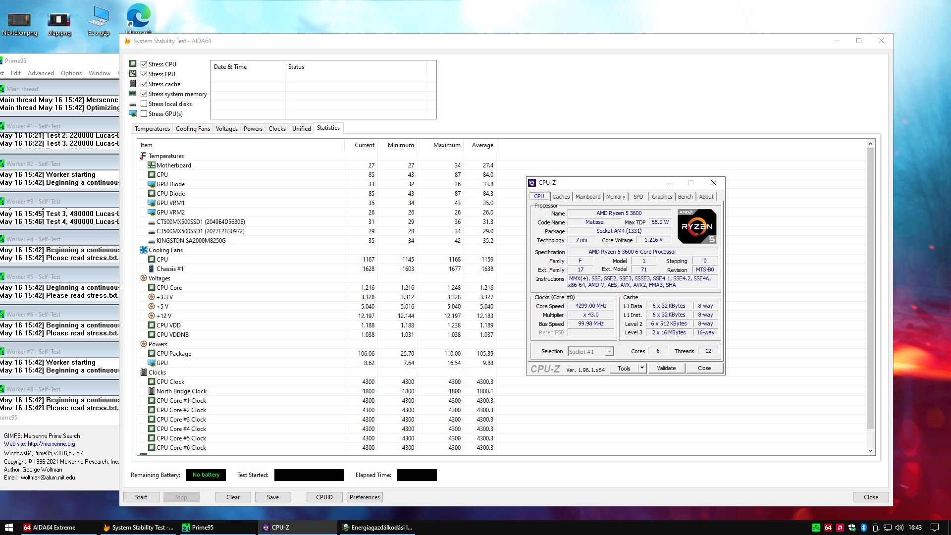 Ez a stabil lassulásos dolog kevés feszültség esetében a 2700-nál is tapasztaltam. Stabil volt alacsony feszültség mellett is 4GHz-en, de ahogy emeltem a feszültséget 1,3V-ig szépen a cb eredmények is nőttek, utána már nem volt változás. A 3600-am esetében meg 4,5GHz mellett 1,25V-tal stabil és magasabb feszültséggel sem nyújt nagyobb teljesítményt. Jelenleg 4,2GHz-en van alacsonyabb feszültség mellett a kisebb fogyasztás érdekében