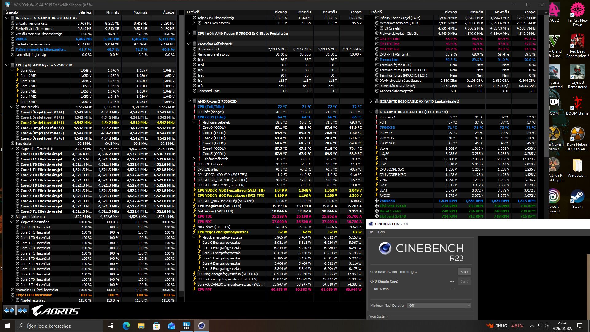 Amúgy kiváncsiságból bekapcsoltam az X3D túrbót BIOS-ban és 6/6 lett a proci..nem is tudtam hogy van ilyen.