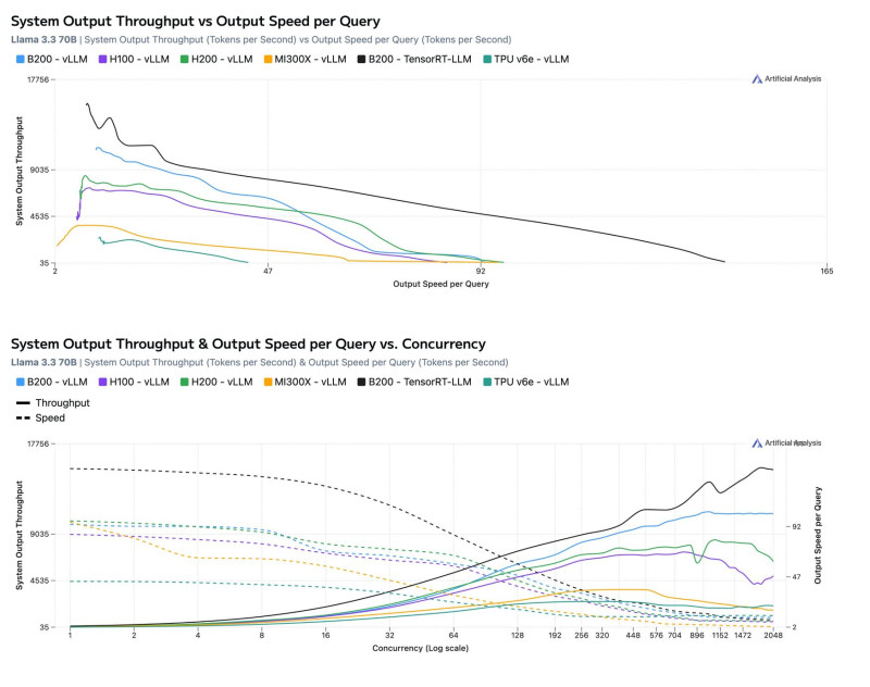 a többi mérés GPT, DeepSeek stb: Jól látható a konkurencia minden terű lemaradása az Nvidia gyorsítókkal szemben.(Ugye volt már temetve a 300 és 355 miatt is az NV.) És az Nvidia is fejleszt,nem a H100 és 200 lesz a konkurencia -