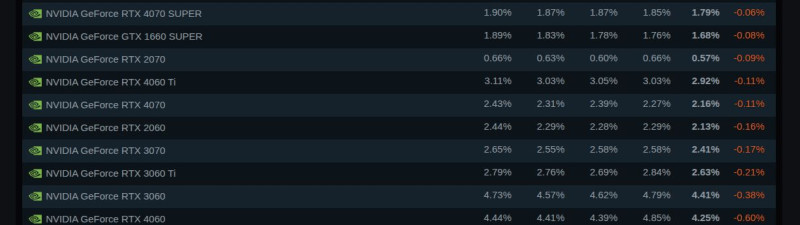 Ezen kivul ott van az is hogy a Steam-ben lathato gepek jelentos resze gamer noti, itt az AMD gyakorlatilag nincs jelen, az szinte mind NV. A covid alatt volt 1-2 ev amikor volt AMD GPU-s gamer noti is a 6000-es sorozattal, de az is csak egy mareknyi modell es rovid ideig, nem oszt nem szoroz a komlett bazist figyelembe veve. -