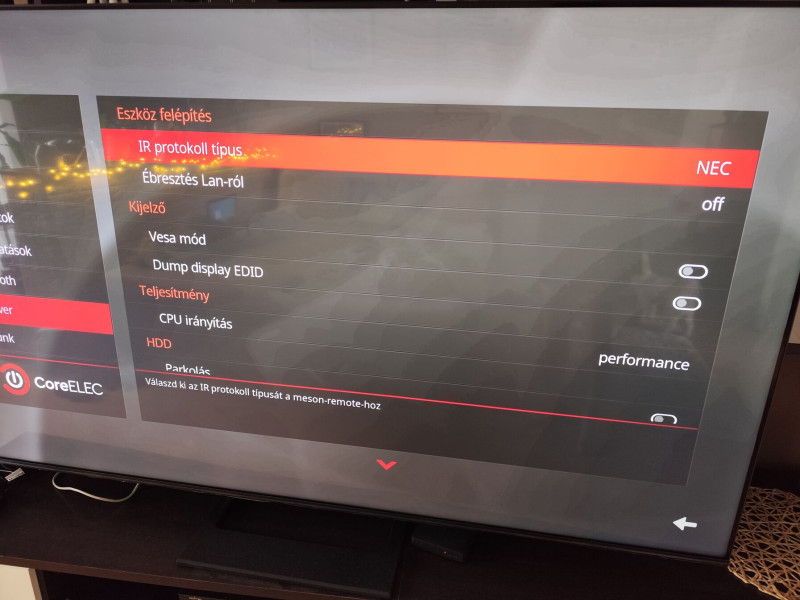 Utána megjelenik már egy új opció CE belül ( IR protokol típus ), és akkor már működik a gyári távja.