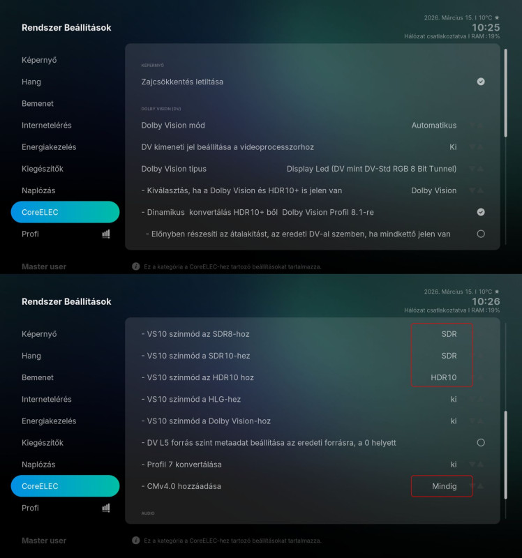 Tehát ha Coreelec > erősítő>tv összekötés van és nem kell cec, akkor a Coreelec CEC nyugodtan kikapcsolható, erősítő és tv viszont kell, ha TV hangját is szeretnéd erősítővel hallgatni, ha tv műsorra nem kell erősítő akkor ott se kell.