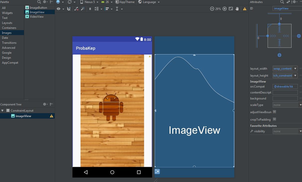 Megdöbbenésemre, kinagyította széthúzta a gombot.Ebből arra következtettem, hogy a kép vagy is az ImageView és a ImageButton Dpi/pixel értéke(értelmezése) nagyon nem azonos.
