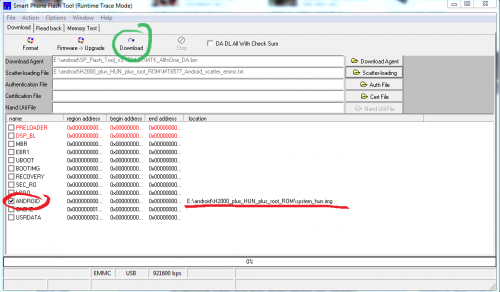 5., Most láthatjuk a scatter file-ben meghatározott *.img ROM részleteket a listában: