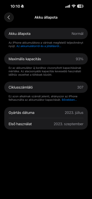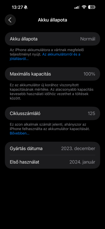 Az egymással való összevetés is fals itt a topikban, mert nekem coconut szerint 105% körül volt újkorában. Szóval a 400 ciklus és 2 év 15%-ot evett igazából meg. Soha nem figyeltem mikor meddig van töltőn, töltés közben is van hogy használom, töltöttem tűző napon is, stb. Egy 100 wattos kombi baseus töltővel nyomom, gondolom annyit vesz fel amenyit csak lehet.