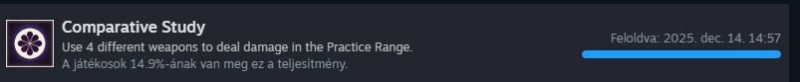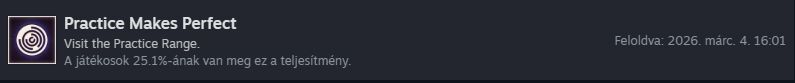 Lehet bug, nekem a Practice Make Perfect-et nem adta be, ami annyi, hogy be kell menni a Practice range-re, viszont a Comparative Study-t megadta elsore, ami ugye anelkul nem is lehetne meg, hogy nem mentem be a practice range-re. Wipe utan megadta.