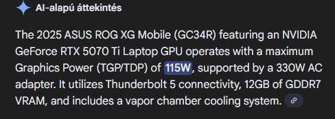 vagyis az 5070 ti esetében a 115+25=140W-ot. )Ha AI barátunkat megkérdezed, már ezt is mondja a tesztek alapján :