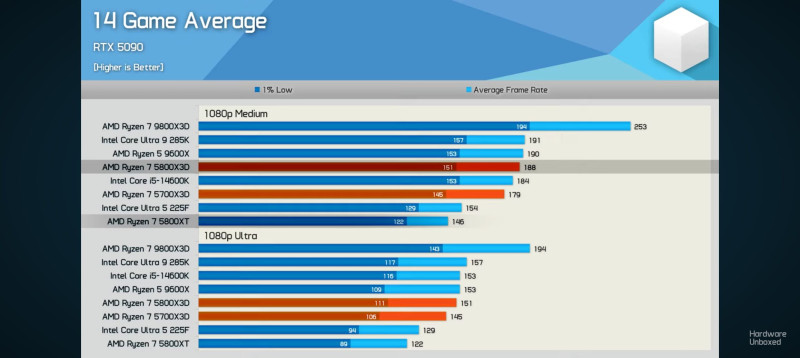 Egyes játékokban több az 5800x3d min FPS értéke mint a 7600x átlaga.