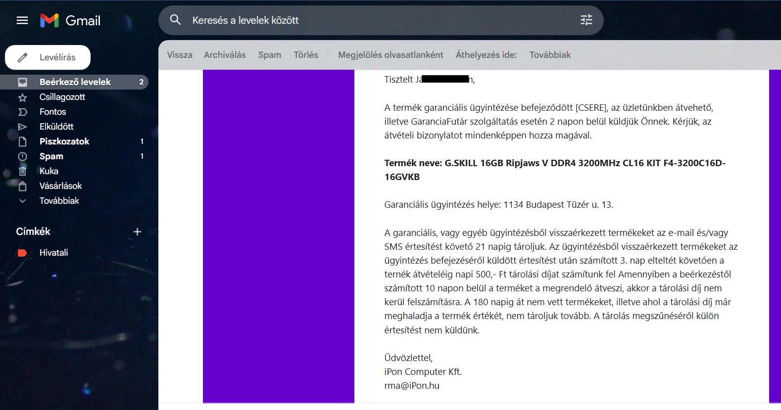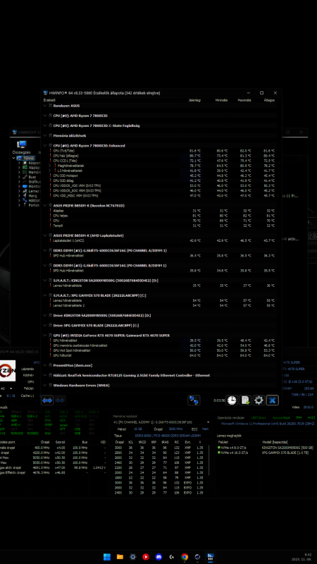 RAM: HyperX 16GB KIT DDR4 3200MHz CL16 FURY és Kingston FURY 16GB KIT DDR4 3200MHz CL16 (a másik 16-os kit később lett véve, és akkor az előző már nem volt kapható).