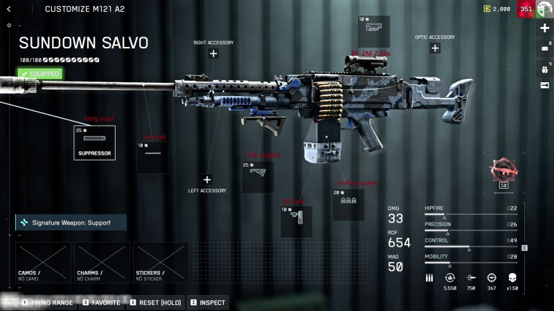 Felhúztam jó közepes szintre, már van rá majdnem mindenem, de kb annyit tudok biztosan kijelenteni róla, hogy eddig semmiben sem jobb más LMG-knél. Közelre az M123 darál, de megkockáztatom még középtávra is jobb. Messzebbre meg egyszerűen a cipőfűzőjét sem kötheti meg se a KTS-nek, se az M250-nek. De, legalább annyira szór meg rúg, hogy ugrál minden a képen mintha muszáj lenne. És az ADS time is akkora mint egy ház, szóval ha netán szembe futok valakivel, csak 5 méteren belül van esélyem hipfireből a 33dmg miatt, annál messzebb ADS-ezni kéne, ami viszont annyi idő, hogy kb bármivel lelőnek előbb.