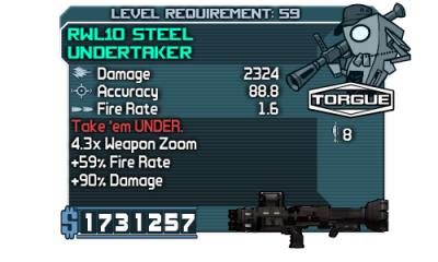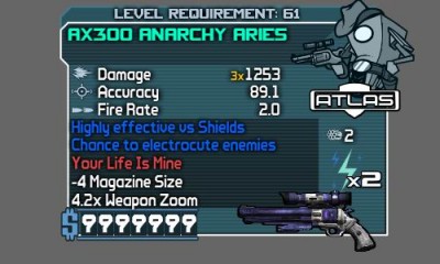 mondjuk ez is csinált fegyó,nem én voltam,csak találtam... de 300 körüli sebzésű shotit én is találtam a Crawmerax-nál,viszont az sem savas.jellemzően az elementál gyengiti a "normál" sebzést...avagy a számérték kisebb lesz,mert az elementált kivonják belőle(hogy miért,a franc tudja...igyse ir ki egy csomó extra képességet sem,mint pl.a pattogó lövedék sem...csakhogy a paraszt ne tudja jól felmérni a fegyókat.ilyen cucc pl.a liquid orion sniper,aminek pattog a lövedéke ide-oda,vagy pl.vannak fegyók,sniperek,amik zoomnál a teljes tárat kilövik,stbstb...) -