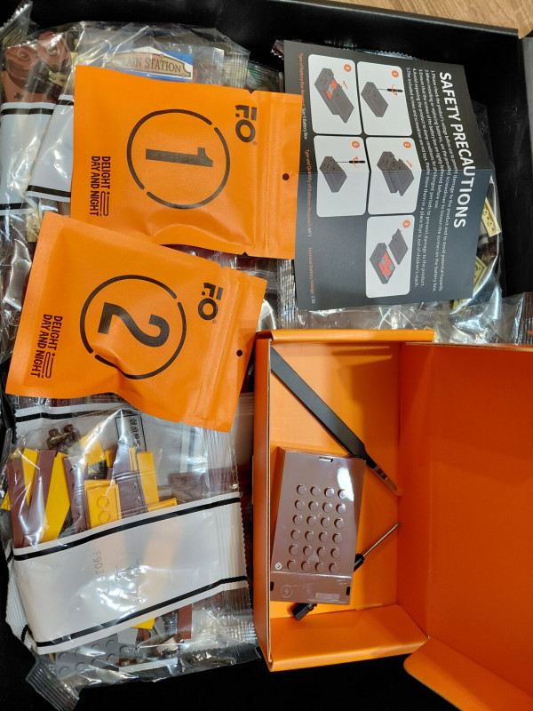 Na srácok nekem is megjött a Funwhole western train station. Nagyon komoly a doboza, sokkal erősebb a kartonpapír mint a legóé, ráadásul a tasakok is szépen vannak elhelyezve benne. Maga a doboz pont akkora hogy minden elfér benne nem parasztvakítás mint a Lego dobozok, ráadásul szépen vissza is zárható.